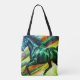 A beautiful photo-like image of a green and black stallion is on the front and back of this reusable shopping bag/tote bag.