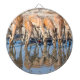 En grupp impalas dricker vid ett vattenhål i Hwange nationalpark, Zimbabwe