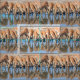 En grupp impalas dricker vid ett vattenhål i Hwange nationalpark, Zimbabwe