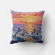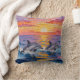 An ai impasto style dolphins swimming with a pink, orange and purple sunset over the ocean . A beautiful coastal throw pillow for your beach home or beachy styled home.