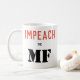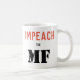 Önska den impeached potusen? Är här din enkla vitkaffemugg med som till uttryckligt det. "IMPEACH" är i peachy-röd Sans Serif bokstäver. "" Är i mindre stilsort som är nedanför, i svart. MT är i enorm svart stencilerar bokstäver. Formulera är på båda sidor av muggen.