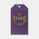 Djupt rik lila med monogram på ett antikt guld rustiskt skydd, accentuerat med regala lejona symboler. Guld studerade trim och contemporary med formaterat teckensnitt i lilac.