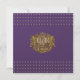 Imperial lila med monogram på ett antikt guld rustiskt skydd, accentuerat med regala lejona symboler. Guld studerade trim och contemporary med formaterat teckensnitt i lilac.