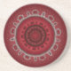 Ett ornerat cirkulärt frakttal av djupt rött och silver, som ett krona som studerade med gems.
