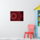 Ett ornerat cirkulärt frakttal av djupt rött och silver, som ett krona som studerade med gems.