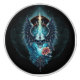 Imponerande, realistisk skalle, som utesluter en mystisk aura. Majestiskt par av stor, luddliknande vingar i djupblått och svart toner som ge formar en dynamisk rörelse.Sammantaget kombinerar denna formgivning inslag av mörker och ljus, liv och död samt styrka och skörhet. Det berättar om omvandling och frihet samtidigt som man fångar det okända.