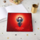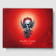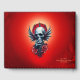 Imponerande, realistisk skalle med vingar placerat i mitten av sammansättningen. Skallen är utförlig med noggranna detaljer som belyser benens och skallens bra struktur. Yta är avslutat med subtilblått och grått-nyanser som ge är skalldjup och dimension. Dessa nyanser i färg skapar en fascinerande kontrast till den ljusröda bakgrunden och framhäver den somliga estetik som formgivningen har.