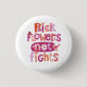 En roligt, rosa, handskriven typografiekurs dekorerar knappens framsida. "Plocka Flowers Not Fights" Ett bra inspirerande budskap i en söt feminin design. Designad av Blackberry Boulevard.