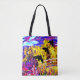 All över collage och design för tryck~ original- vid Aleta. Konst på en medveten återvinningsbar toto för jord. Ljust färgrikt avbilda av tre kråkor eller blackbirds som tar flyg, över en spång i en ljus fanciful trädgård. Impressionistic vördnad till Van Gogh, Monet och Manet. Med kanske ett handlag av Poe.
