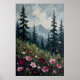 Impressionist Mountain Landscape with Wildflowers Poster