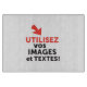 Choississez la couleur du fond, stora textes et bilder. Tous les modèles Disonible, voir les options! Imprimer vos begrepptions en ligne en français Télécharger vos bilder préférees et utilisez-les sur vos propreproduits. Une façon originale d'offrir des cadeaux à vos amis et collègues selon vos goûts et votre inspiration. Använd l'éditeur en ligne pour uploader vos bilder. Vous pouvez aussi ajouter votre propre texte et choisir le format ainsi que les stilar de textes! Un très grand choix de Polies. Suporte bilder en png, jpg, ai et pdf. Une fois vos design uploadé, nous ferrons l'intryckpour vous et le colis sera envoyé par la poste dans un délai rapide. Qualité Guarantie - Disonible - Service à la clientèle multilingue (français, anglais, Québec, etc.) Parfait pour les fêtes d'enfants, les réunions professionelles ou religieuses, les écoles et professeurs, les giftermål et célébration duscha de bébé, les anniversaire et des studenten. ==== Planche à découper en verre décoré 27,9 cm x 20,32 cm Équipez votre cuisine d'une planche à découper personnalisée en verre. Fabriquées en verre trempé pressé à la main, ces planches à découper originales sont parfaites pour préparer votre nourriture et s'accorderont avec la décoration de votre cuisine. Disponible en cinq tailles différentes, un cadeau tendance pour n'importe quel hôte ou hôtesse. Dimensioner: 29,2 cm x 20,3 cm (petite rectangle) Sans aucun risk pour la nourriture Verre trempée presée à la main de grande qualité, non-absorbant, non-poreux, et qui résiste aux tacher Avec caoutchouc antidérapant Ne pas mettre au 4, micro-ondes et lecte ave vaisselle, laver à la main uniquement