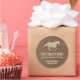 En fauxläderbakgrund tar looken av en sadel för att visa av en imprint av en rinnande häst på denna rid- klistermärke. Avbilda är enkel, yet effektiv med ett namn, en beskrivning och en information om kontakt under den litet genomskinliga hästen. Tillgängligt med att matcha produkter.