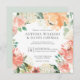 Modern botanisk bröllopsinbjudan i klassisk persikofärgad pastellfärgad rosa har vit, rosa, persikofärgad rosa och orange och ro och skaka gröntens bladkaskad på övre och nedre kanten av namn och bröllop. Den moderna typbehandling som används för din bröllop-information ökar designens moderna klassiska känsla. Baksidan av inbjudan har ett samordnat ultraljust grönt färg. Teckensnittet finns i ett klassiskt grått färg. Det här objektet ingår i en In-bloom-samling. Besök vår butik. Tittar för en allt-i-ett-lösning för att tillkännage din stora dag? Spara pappert och pengar som lägger till uppgifter om bröllop, hotellinformation, recept eller riktning på baksidan med hjälp av mallfyrkantsformatet är ovanligt och mycket klassligt! Vi kan byta färg, typsnitt och annat för att göra din design unik personlig. Kontakta oss via butiken eller skrivan på citronelladesign@gmail.com om du behöver hjälp eller anpassningsbar.
