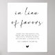 In lieu of favors wedding sign: thank your guests with this modern minimalist sign, letting them know a donation was made on their behalf. A thoughtful touch that shares your gratitude and generosity on your special day. Customizable colors.