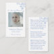 In Loving Memory Blue Floral Photo Prayer Card Visitkort