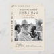 Den här moderna begravningsprogramdesignen har en ren, minimalistisk layout med en mjuk elfenbensbakgrund, elegant serif typsnitt och varmt handskrivet guld-skript ger ett tidlöst och respektfullt utseende. Ett stort foto visas vid sidan av personligens minnesdetaljer, vilket anger en hjärtlig ton för tjänsten. På baksidan innehåller layouten utrymme för serviceordningen och skapar det enkelt att skapa ett meningsfullt och välstrukturerat pris. Denna smakfulla och contemporary utformning erbjuder ett vackert sätt att fira en älskad persons liv med nåd och värdighet.