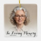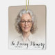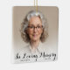 Julgran-prydnadsföremål i personlig med kvadratiska keramiska minnesmärken har "In Loving Memory", namn på din älskade, födelseår och dödsfall på foto.