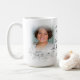 Modern i Loving Memory Photo Mugg. Design med foto, blommigt inslag och namn på framsidan.. Perfektens minnesstund, hyllning till en älskad som har dött.