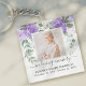 Den här vackra blommigten med lila vattenfärg kan vara personlig med ett foto av din älskade och namn och kan användas som en keepsaké.