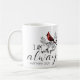 A Tender Tribute: Honor your loved ones with this elegant memorial mug. The red cardinal, a symbol of hope and spiritual presence, graces the front, while featuring a comforting Bible verse