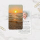 This peaceful memorial prayer card design pairs a warm ocean sunset with a softly faded photo and elegant In Loving Memory typography. Gentle waves and golden light create a calming backdrop that reflects comfort, gratitude and lasting love. Thoughtfully designed for a funeral, memorial service or Celebration of Life, this keepsake offers family and friends a meaningful way to honor a life remembered with compassion and grace. Its small and portable size of 3.5x2" (wallet-sized) makes it convenient for loved ones to carry it with them as a reminder of your loved one’s life and spirit. Personalization makes each card unique.