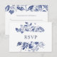 Det här fina och snyggt botaniska bröllop-responskortet har trendig blue bläck löv på vit bakgrund och en plats för din gästs val av poster.