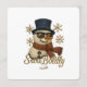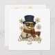 En söt glitter-snöman med svart toppmössa, bärnstensfärgad halsduk och solglasögon, inramad av gyllene snöflingor. Perfekt för vinterkläder, barnkläder och festliga presenter.