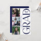 Denna moderna examensinbjudan har en djärv och stilren layout med en marinblå och vit färgpalett. Designen visar upp ett stort vertikalt ”GRAD” typsnitts-element i par med en examensmössa-ikon och ”Klass av 2026” detalj för en modern touch. En fotokollage med flera bilder framhäver examenstagens personlighet med avslappnade och porträttbilder, medan den motsatta panelen presenterar evenemangsinformation i ett rent och organiserat format. Perfekt för studenter som går ut gymnasiet eller universitetet, denna inbjudan kombinerar elegans med en personlig, fotodriven design – idealisk för en minnesvärd firande inbjudan.