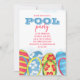 Den här designen har modern enkel vattenfärg bassäng party, minimalistisk vismisk sommarsimning, tropisk strand Splish stänk, strand Hawaiian luau flinflip flops, kalligrafi av snyggt trendig, vattendiken roligt firande utomhus, underbar för flickfödelsedag, rolig, fet typografi, BQ bakgård, söt röd, blå, gult, vuxen barn tonåring interpolering