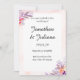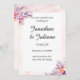 Elegant och romantisk blomsterbröllopsinbjudan med mjuka akvarellblommor i nyanser av rosa, lila och orange. Designen visar upp ett modernt kalligrafiskt teckensnitt för parets namn, vilket ger en touch av sofistikering. Perfekt för vår- eller sommarbröllop, denna anpassningsbara inbjudan innehåller alla viktiga evenemangsuppgifter i en ren, minimal layout med en pastellrosa ram. Idealisk för par som söker ett stilrent och tidlöst meddelande för sin speciella dag.