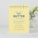 Fira den sötaste ankomsten med denna lekfulla Baby Butter Baby Shower-inbjudan! Perfekt för matlovers och blivande mammor med humor, har denna unika design ett smörstångstema med matskedsmärkning längst upp och fet blå typografi på en mjuk smörgul bakgrund. En rolig twist på traditionella baby shower-inbjudningar, det är det perfekta valet för en bakning baby shower, köksinspirerad fest eller någon förälder som älskar ett lekfullt tema. Denna inbjudan sätter tonen för ett glatt och minnesvärt evenemang samtidigt som stilen hålls modern och unik. Perfekt för könsneutrala shower och kreativa fester.
