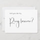 Det här minimalistiska manuset Ring Bearer Frieri kort är perfektens sätt att fira din möhippa i stil. Har elegant och modern typografi. Du kan anpassa den här designen genom att klicka på "Anpassa den här mallen" eller om du vill ändra teckensnittet, bakgrunden eller inslagen på ett annat sätt kan du klicka på "Redigera med Design Verktyg".