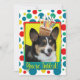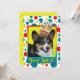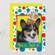 Inbjudan era gäster med det här visuella Corgi-Hund-kortet. Med en kaka som är balanserad på huvudet är den här designen säkert en leende och gigglar! BTW, den här designen har flera versioner, med olika färger i bakgrunden. Det finns också en version av Grattis på födelsedagen.