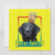 Inbjudan era gäster med det här visuella Hund Black Labrador. Med en kaka som är balanserad på huvudet är den här designen säkert en leende och gigglar! BTW, den här designen har flera versioner, med olika färger i bakgrunden. Det finns också en version av Grattis på födelsedagen.