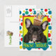 Inbjudan dina gäster med det här Hund- hälsningskortet för vit Fransk. Med en cupkaka på huvudet är det säkert ett leende och en giggel! BTW, den här designen har flera versioner, med olika bakgrundsversioner av färg. Det finns också en version från Grattis på födelsedagen.