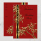 Inbjudan Elegant Födelsedagsfest Asiatisk Bambu Guld Röd Svart fest enkel, ren, design, Födelsedagsfirande Vuxen Företagsetikett Vänligen använd inte metalliskt silver!