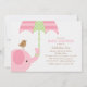 Denna design presenterar ett rosa elefantinnehav för bebis en rosa- och gröntpolkadot och det randiga paraplyet med en lite brun pippi på henne som är head. Diagram©Cocoastudio