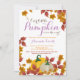 Inbjudan för baby shower för flicka för nedgångpumpa purpurfärgad. Höstbaby showerinbjudan. Vattenfärgpumpablommigten blommar och löv. Lilor och orange. Behaga klickar "skräddarsy den" knäppas och använder vårt designverktyg för att ändra denna mall för mer ytterligare customization.