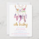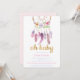 Denna förtjusande inbjudan för denchic drömstopparen är perfekt för baby shower som du planerar! Den mjuka pastellet för designsärdrag blommar, och fjädrar och texten poppar ut med de delikat och perfekt matchade blått-/grått- och rosafärgerna.