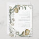 Denna älskvärda helgdag som gifta sig inbjudan, presenterar en vattenfärgkranfullt av knapriga guld- pears och skogchampinjoner, och raddor görar grön lövverk.