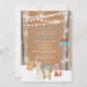 Fira pojken på långt! Den lantliga vinterplatsen med brun wood kornbakgrund, eleganten som, är moderna och, övervintrar temat för underlandbaby showerpartyet som presenterar snöflingor, snö, stränger ljus, djur och björkträd. Det finns en uggla i träd med ett blåttbaner, som läser, "det är en pojke!", Perfekt för vinterfiranden & baby shower. Personifiera med din information om partyet som all text är fullständigt anpassadet.