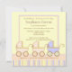Tre tider roligten! Det är meddelandet på denna baby showerinbjudan som presenterar förtjusande rosa- och baby med hjärtfelvagnar med rosor, blått, gult och solbrännarandar på en gul bakgrund.