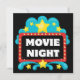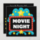 Denna inbjudan för partyet för filmnatten Themed presenterar ett rött, och svart stort festtälthattnågot att säga "filmnatt" med gula stjärnor för blåttmoln som omger stort festtält, undertecknar över en svart bakgrund på bekläda. Baksidaen av inbjudan har mallområden för att dig ska tillfoga ditt party specificerar. Clipart på baksidaen av inbjudan inkluderar ett rött, och vit "medger en biljett", och ett stort ösregnar av popcorn.