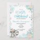 Övervintra ONEderland den första födelsedaginbjudan med vitbakgrund och snöflingorperfekten för vinterfödelsedag.
