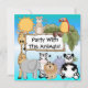 Party med zoodjuren däribland en pandabjörn, lejont, giraff, elefant, flodhäst, toucan, apa och sebra! Gulliga och färgrika inbjudningar för zootemafödelsedag som du kan lätt skräddarsy med ditt barns födelsedagsfestnärmare detalj.