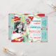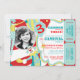 Roliga cirkusclowner i styltor, kort för födelsedag för jonglera och innehavballongtema med fotomellanlägget i deppighet, rött, vit och gult med raffle etiketterar på sidan. Perforera precis sidorna för ett lätt river av!