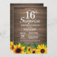 Inbjudan för födelsedag för lantlig solrosöverrrakning 16th. Blommigtblommor och lantlig Wood bakgrund. Retro landvintage. Ungeflickafödelsedag. 13th 15th 16th 18th 20th 21st 30th 40th 50th 60th 70th 80th 90:e åldras 100. för 12:e, något. Tryckbara Digital. Behaga klickar "skräddarsy den" knäppas och använder vårt designverktyg för att ändra denna mall för mer ytterligare customization.