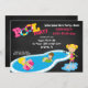 Starta ditt firande av höger med denna förtjusande inbjudan. Perfekt för den födelsedagflicka party för bassäng. Den har en svart svart tavlabakgrund. Det finns en stor simbassäng med ett förtjusande gulligt flickaanseende bredvid bassängen i en pöl av vatten. Hon har blont hår och en shock rosabaddräkt. I bassängen är en gullig blond haired flicka som flyter i en raft. Bredvid henne är en förtjusande brun haired flicka som omkring flyter på en grön polka, pricker röret. Över det bästa av inbjudan är ordbassängpartyet. De två oen i bassäng är färgrika rör. Kontrollera ut de många andra produkterna och designerna i denna bassängpartilinjen. ©JWillustrationer
