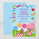 Denna design strilas med alla sorter av godisen och en pepparkaksgubbe. Ett toppet gulligt kort för någon liten flicka som firar med en godislandfödelsedagsfest.