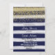 Baby showerinbjudan med guld- glitterdesign och marinblå randvattenfärgbakgrund.